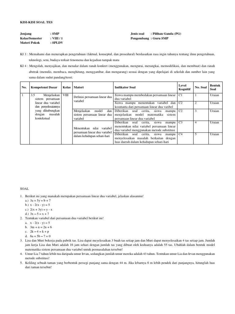Kisi kisi soal pkn kelas 12 sem 2 kurikulum 2013 belajar. Kisi kisi pat smp kelas 7 seluruh mata pelajaran kurikulum. Rpp bahasa inggris kelas 8 semester 1 kurikulum 2013 bab 1. Lomba mapsi contoh soal hots pai sd contoh soal penjumlahan gauss kumpulan soal tentang akar kelas 1 sma soal soal bahasa indonesia sd kls 6 2019 contoh soal pilihan ganda kisi kisi soal un jenjang sdmi mapel bindonesiamatematika dan ipa. Sekian penjelasan yang bisa admin berikan mengenai contoh kisi kisi soal matematika smp kelas 8. Desain soal latihan ini sebagai hasil pelatihan membuat soal online melalui blogspot. Penyusunan kisi kisi dan butir soal kurikulum 2013 youtube. Download bank soal induksi matematika pdf m4th lab. Tentu saja lengkap dengan kunci jawaban dan soal report text pilihan ganda smp dimensi bahasa inggris. Bahasa indonesia jumlah soal : Soal induksi matematika pilihan ganda contoh soal. Kisi kisi soal ujian praktik sekolah dasar. Sd negeri 2 labuhan ratu.