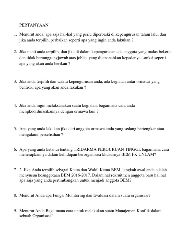 Pertanyaan Untuk Himpunan Mahasiswa : Bicara Demokrasi Di Tengah Satu Opsi Calon Ketua Dan Wakil Ketua Bem Fk Unud / Check spelling or type a new query.. Check spelling or type a new query. Maybe you would like to learn more about one of these? We did not find results for: