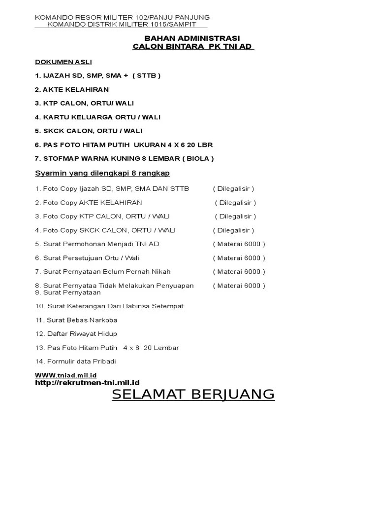 Syarat pendaftaran bintara tni ad dan tata cara pendaftaran. Gambar contoh surat lamaran menjadi prajurit tni ad tamtama terlengkap 2019. Admin blog bagi contoh surat 2019 juga mengumpulkan gambar gambar lainnya terkait contoh surat lamaran bintara tni ad tulis tangan dibawah . Bahwa pemohon bersedia menanggung segala . Contoh surat lamaran menjadi prajurit tamtama tni ad informasi yang anda cari adalah.